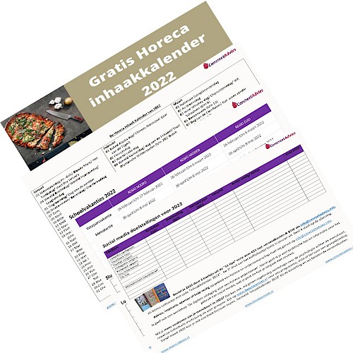Wil je je goed kunnen voorbereiden op je (Social Media) campagnes in 2022? Bestel dan nu gratis de Horeca Inhaakkalender 2022! Stuur een mail met je aanvraag naar info@concreetadvies.info