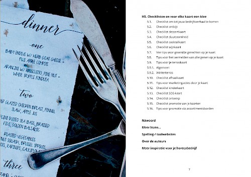 De werkervaring van de horecajournalist en -adviseur vormen daarbij de voedingsbron. Daarnaast hebben de auteurs gebruik gemaakt van de resultaten van verschillende onderzoeken op het gebied van menukaarten. “Dit is het eerste Nederlandse inspiratiehandboek voor makers van menukaarten. We hopen hiermee niet alleen ondernemers maar ook leerlingen in het horecaonderwijs te helpen bij het samenstellen van menukaarten.”